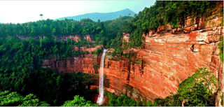 Dans la zone des reliefs Danxia à Chishui de Guizhou, il y a un canyon profond avec